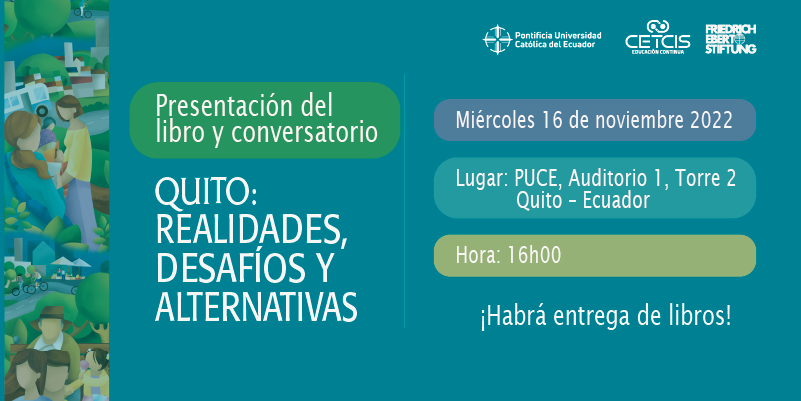 FES-ILDIS Ecuador y la Pontificia Universidad Católica del Ecuador (PUCE) invitan a la presentación del libro y conversatorio Quito: realidades, desafíos y alternativas, el cualparte de un diagnóstico a fondo de las causas de los problemas de la urbe y los desafíos para proponer un sinnúmero de alternativas de transformación.