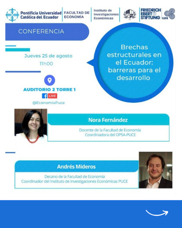 FES-ILDIS Ecuador y la Facultad de Economía de la Pontificia Universidad Católica del Ecuador – PUCE te invitan a participar de la conferencia Brechas estructurales en el Ecuador: barreras para el desarrollo