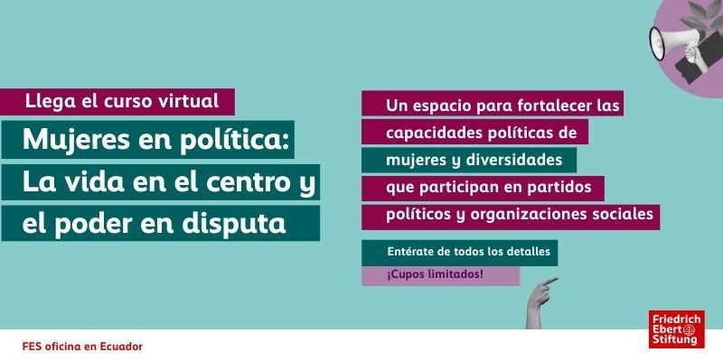 La Fundación Friedrich Ebert Stiftung (FES) en Ecuador invita a participar en el curso virtual autoguiado “Mujeres en Política: la vida en el centro y el poder en disputa”, que es parte de la Caja de Herramientas para Mujeres en Política.