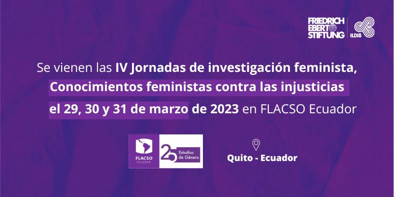 FLACSO Ecuador realizará las IV Jornadas de Investigación Feminista el 29, 30 y 31 de marzo de 2023, con ocasión del 25 aniversario de su programa de Estudios de Género.