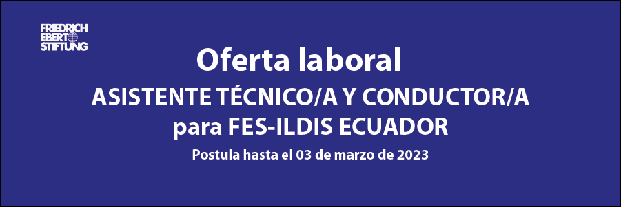 FES-ILDIS Ecuador busca un/a ASISTENTE TÉCNICO/A Y CONDUCTOR/A para su oficina en Quito. ¡Postúlate hasta el 03 de marzo de 2023!